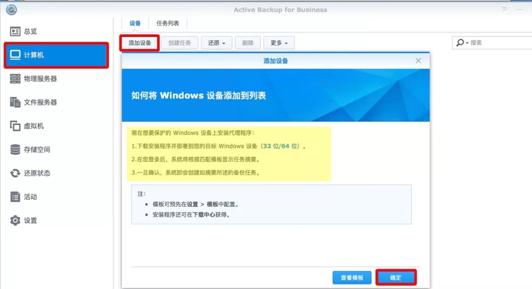 如果需要對Windows Server整機系統(tǒng)提供保護,你可以在服務器上部署代理程序,如有多臺服務器也可以批量部署。如果服務器遇到災難無法正常運行的時候,可以選擇通過Synology Virtual Machine Manager (VMM)直接在群暉NAS上恢復作為臨時的容災方案,減少業(yè)務中斷時間,降低企業(yè)損失。